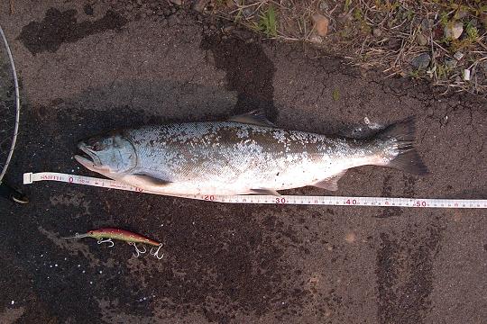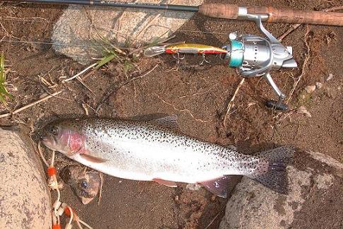 夕べから雨が止まず鮎釣りするにはチョット水温が低そうだし、濁りも少しあるので朝の内少しルアーで遊びました。やはり来るんですね、久しぶりの良い引きを味わいました。 [サクラマス釣行記へ] [ホームへ] [サクラマスのルアーフィッシングへ] [最上川の大鮎友釣りへ] [クロダイのルアーフィッシングへ] |