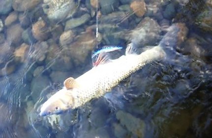 あれっ! 腹掛かり、しかも50cmオーバーのニータン(ニゴイ)・・・。 サクラマスが化けやがった 注※焦っているので動画ではウータン(ウグイ)と言っているアホですorz 6月12日