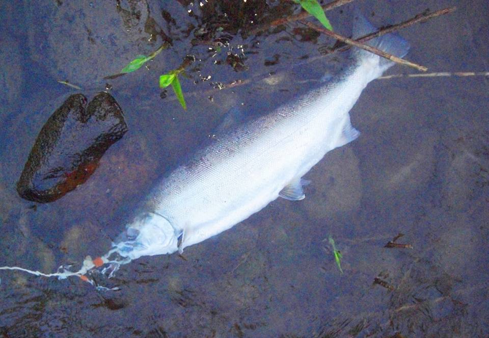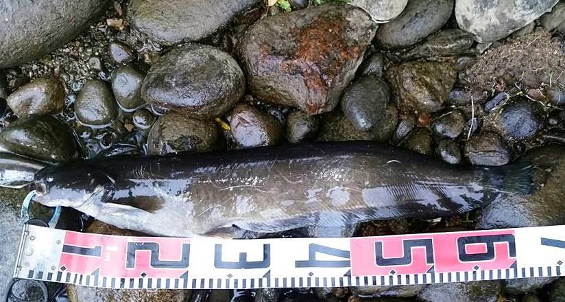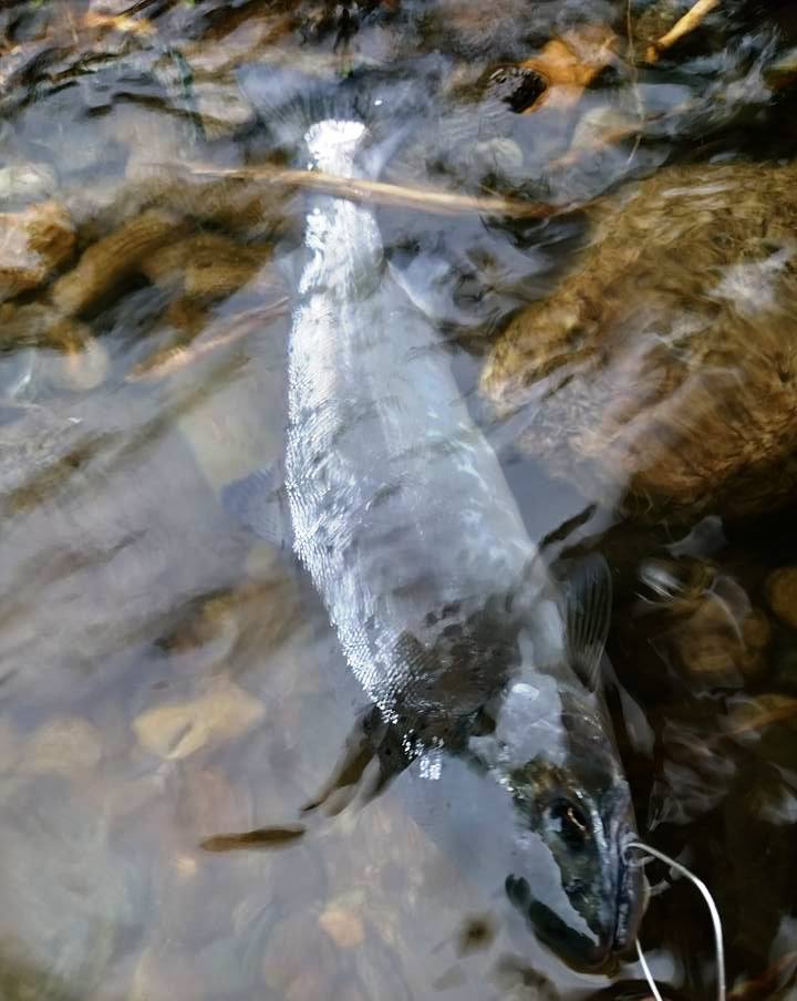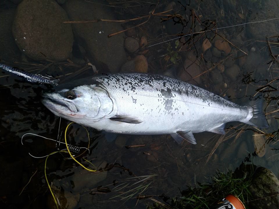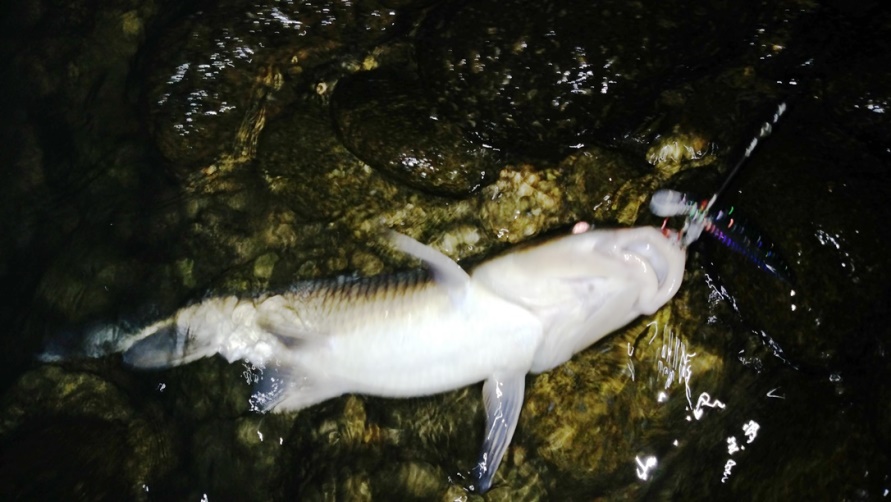 今年日向川の同じポイントで以前にバラシタのより小さいけど70cmはありそうだ! まさに夏マス、鱗がびっしりで簡単には剥がれないタイプ。