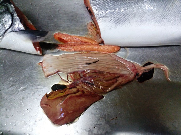 自然の恵みを処理してみたら、 62cm2.7kgのメスで胃袋にはゴミしかありません. 餌を食べない個体タイプのようでした。 ///////////////////////////////////////////////////////////// [ホームへ] [サクラマスのルアーフィッシングへ] [最上川の大鮎友釣りへ] [クロダイのルアーフィッシングへ] |