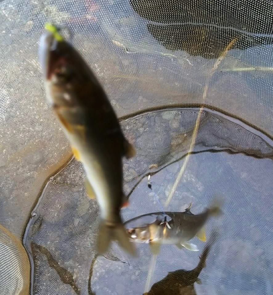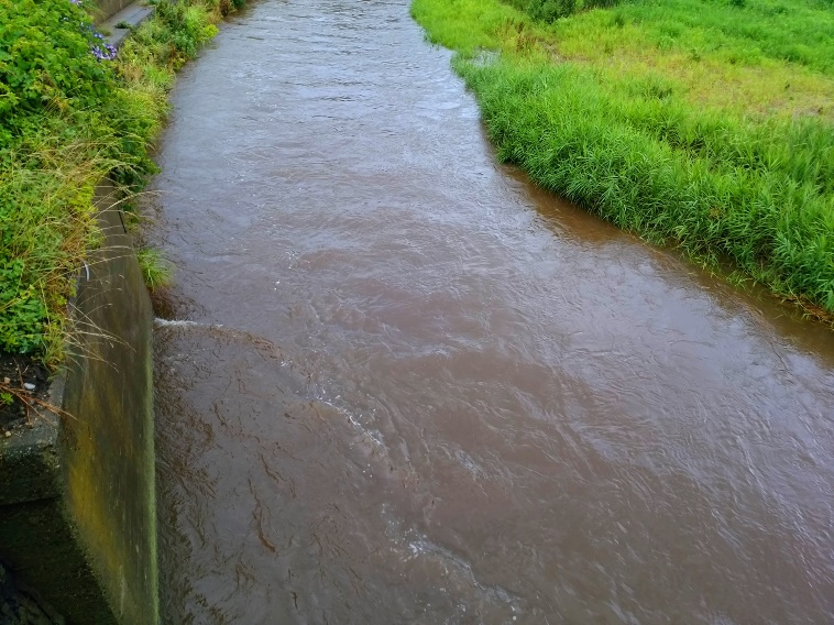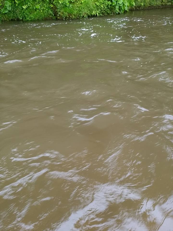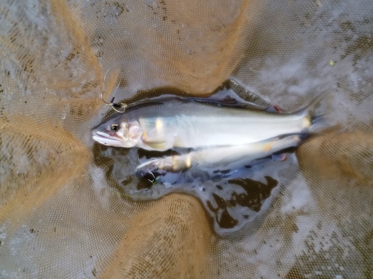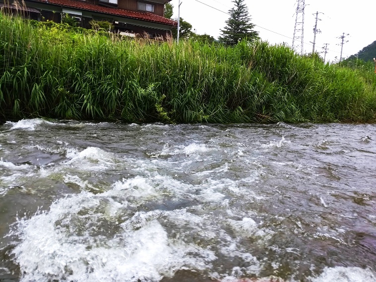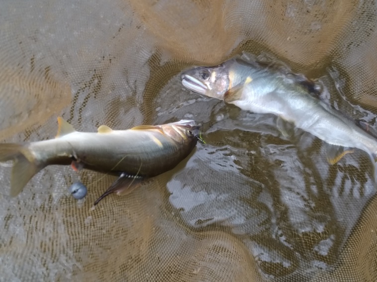 小河川でも濁りがきつくて深場や瀬尻は無理だな。 リフルや瀬脇など普段大型がいないのでパスするポイントを釣るしかない状況!