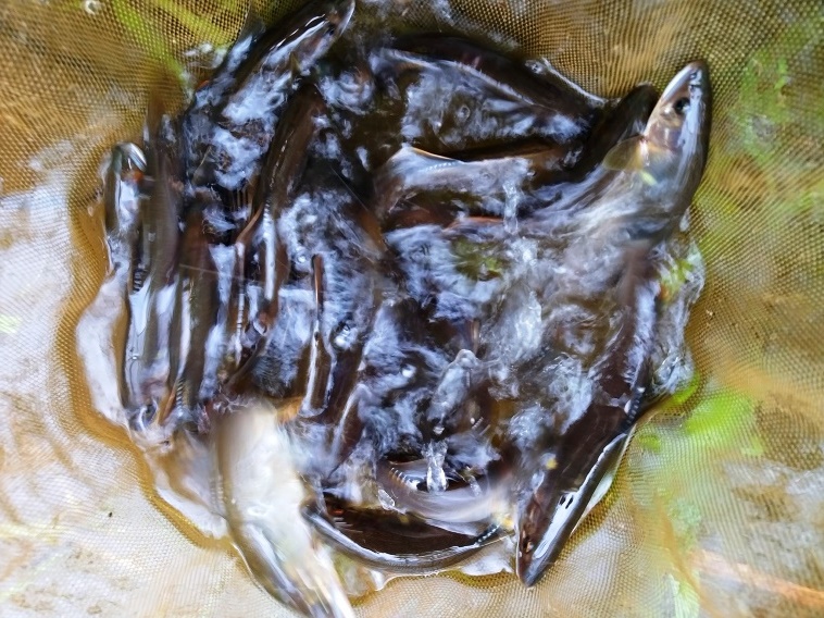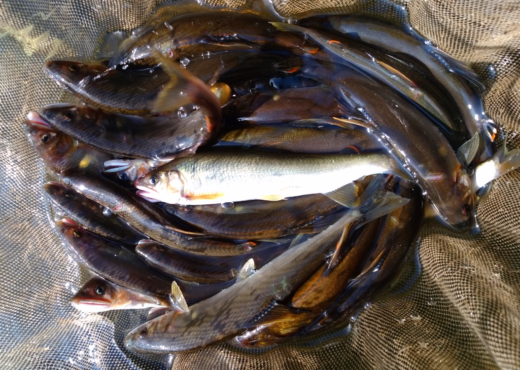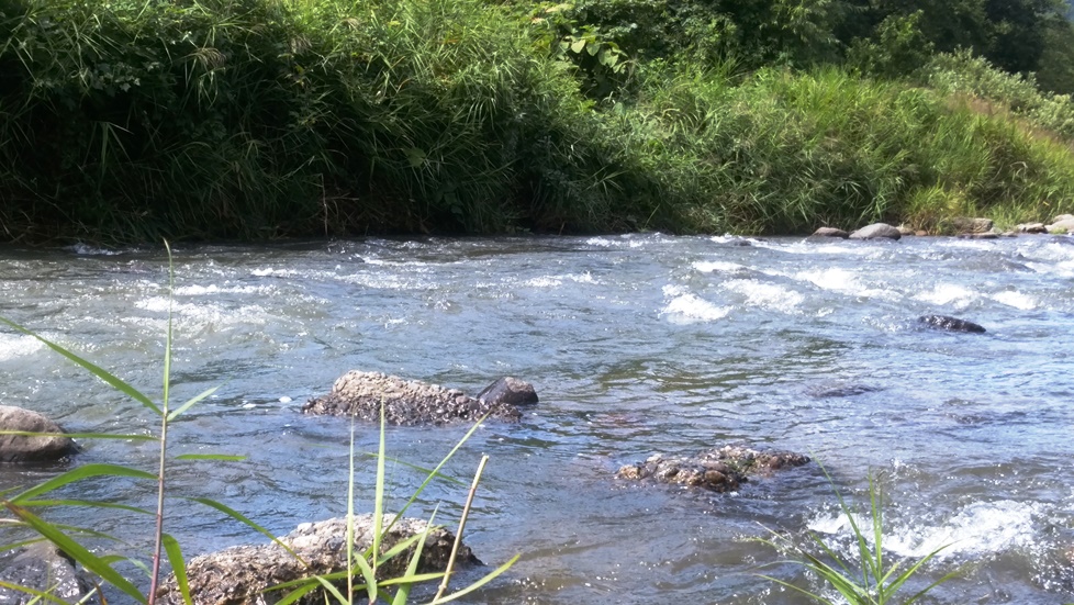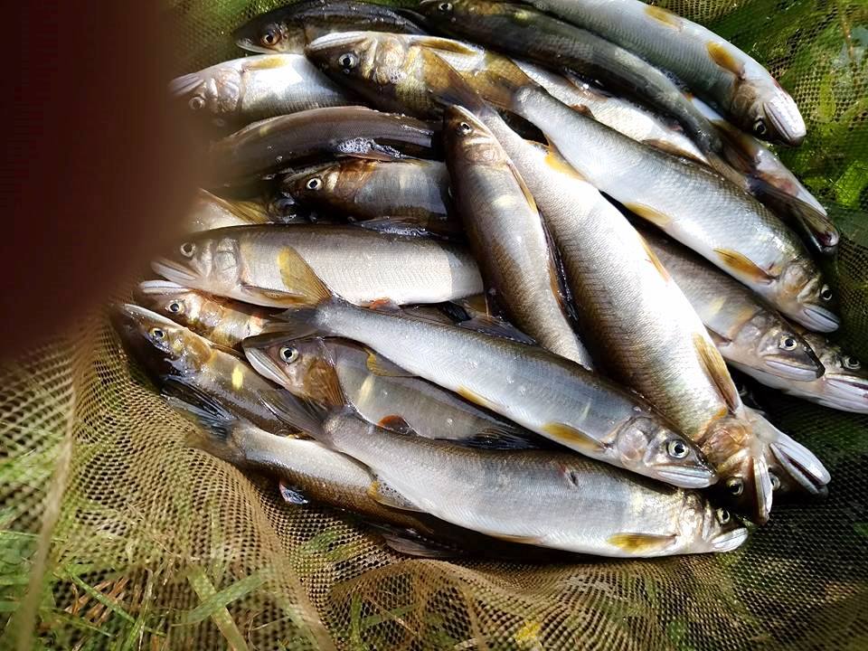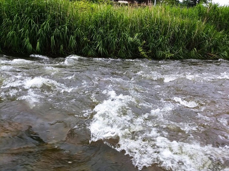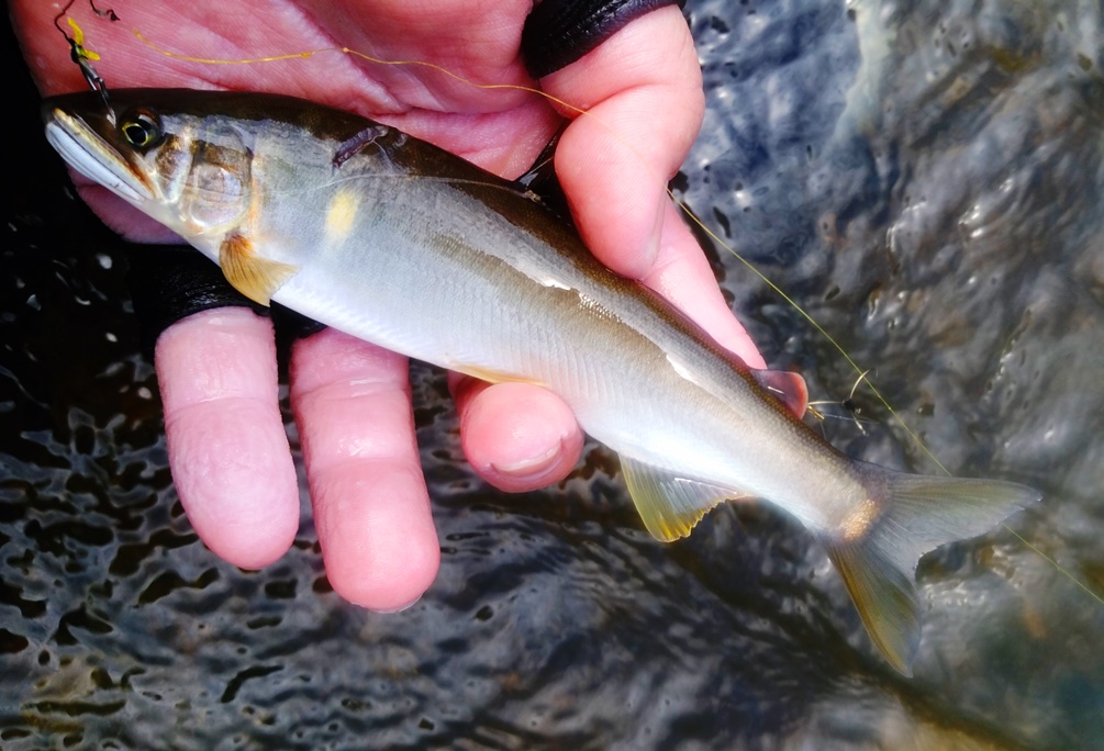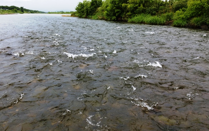 高水なので小河川でも荒瀬釣りを楽しめました(^_-) 錘玉2~3号の荒瀬は貸切でした。