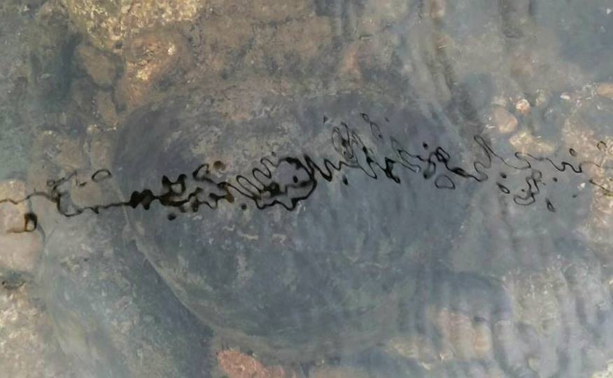 雨降る中、帰り道に赤川で鮎釣りの下見(^_-) ナワバリ鮎のハミアト見ー付けた!(^^)!