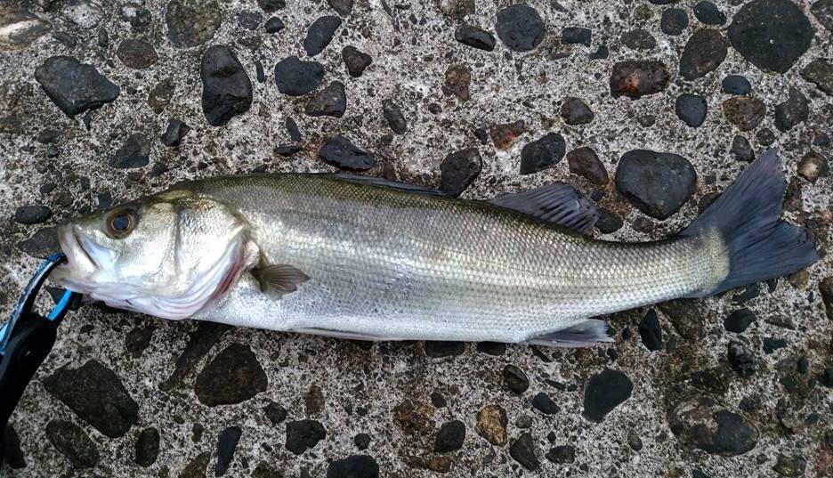 ロングキャストしてシェイキング&ジャークを繰り返すとドンッ? でもドラグが全くならないでジャバジャバ? 50cmのシーバス君でした。