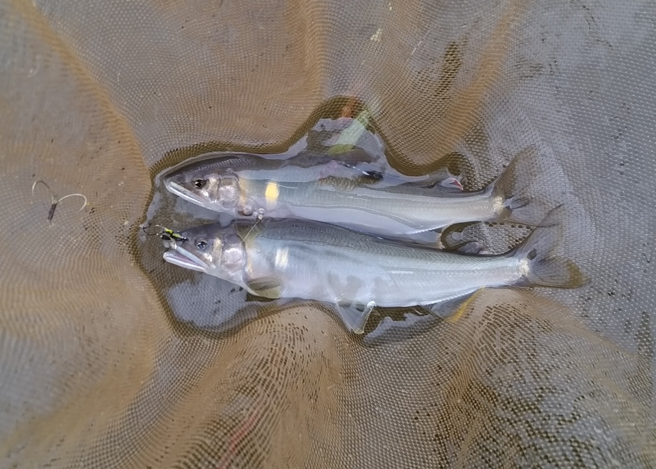 怖かったのはヒットルアーがハスルアーに似たスミスのRIPPER16g赤金のせいでバラシの可能性が高かったこと。