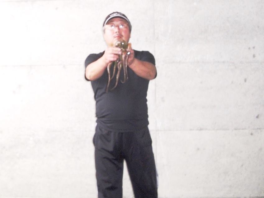 風と雨が酷くなって来たので撤退、1時間50分の速攻で帰宅。 生きたまま中タコを連れ帰り、先輩の焼鳥屋さんに進呈。