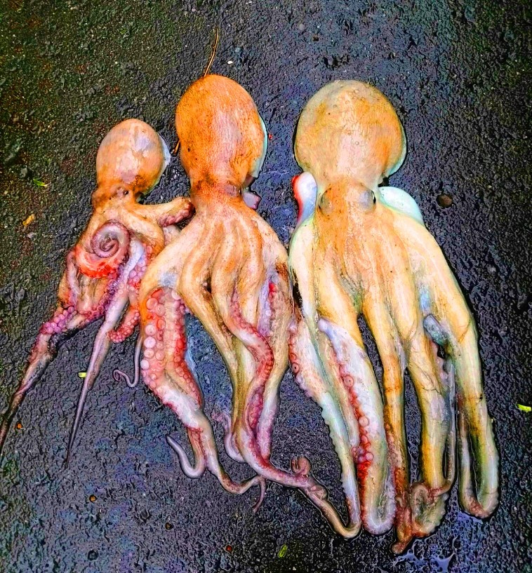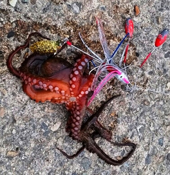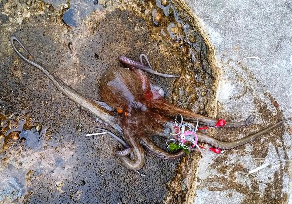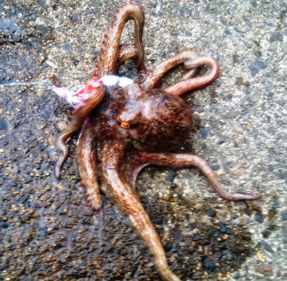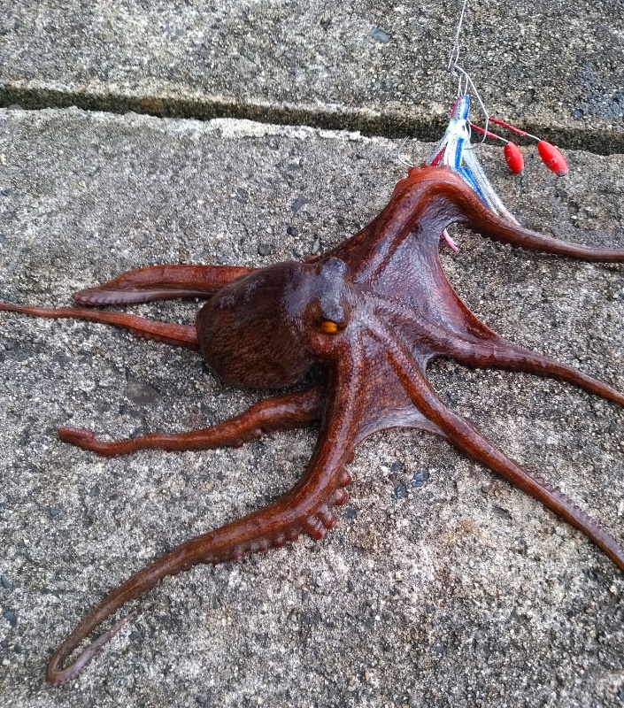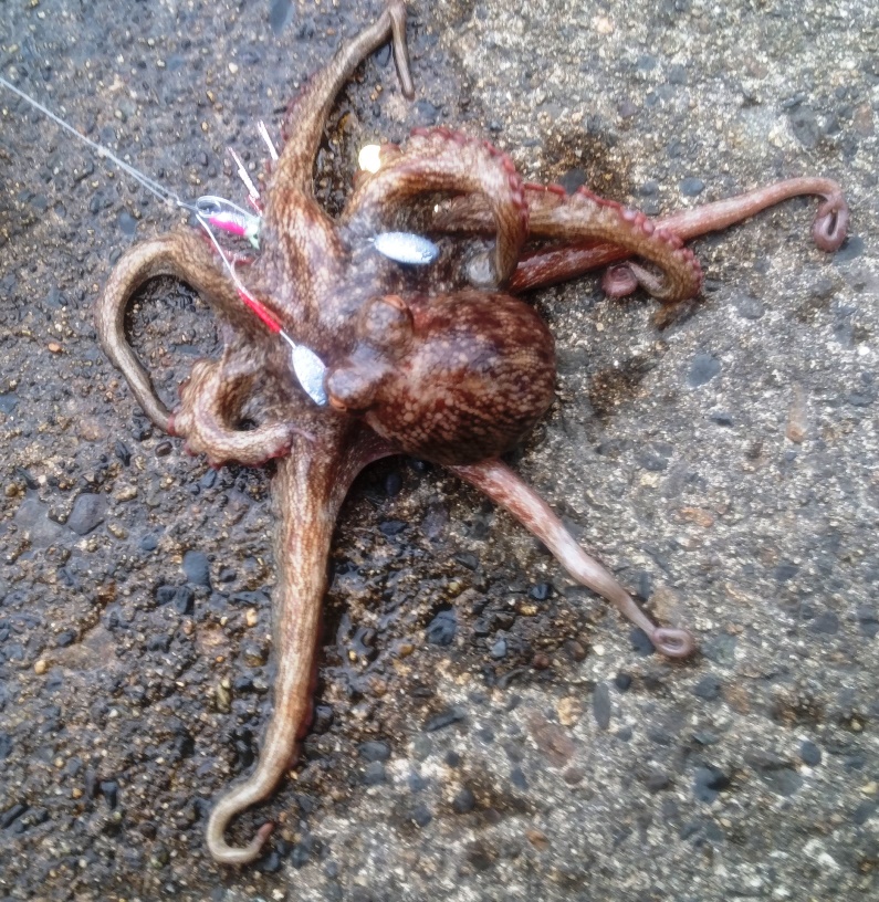 大ダコを2匹、チビタコ1匹ポッチャンと落としてしまいました。