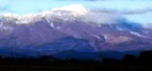 雪を頂いた出羽富士鳥海、威厳があって綺麗です! 寒い!