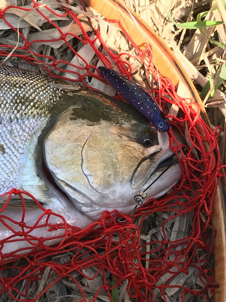 71cm4.1kgの超大型サクラマスが釣友の長瀬氏に釣れました。 このカラー何故か大型が釣れる。 少々高価ですが、絶好ポイントでここ一番の時に使って見てください。 きっとメモリアルな大物サクラマスや大岩魚を獲れるでしょう。 安価な物でも根掛りで何個もロストすれば懐は痛むし、 さらにバラシに繋がれば使う意味がありません。 問い合わせ・・・オプセル社http://www.clinchlure.com/ TEL 050-1128−9895 ※オプセル社製品について 自分が理想とするヒットしたサクラマスを確実にランディングできるミノープラグとして 特注で制作して頂いているもので、市販品とリップ形状やカラーが違います。 私に利益供与やロイヤリティーはありません(^^ 購入は直接オプセル社までお問い合わせください。 スプーンもそうだけど値段やカラー、何も関係ない! ミノープラグもカラーや形状含めて使う側の力量に合い、リトリーブ時のバランスさえ良ければ何でも良いのですが、 荒瀬でバラシたくない私のダウンストリームサクラマス釣りの 集大成としてオプセル社にリップ改造やカラーを特注で 作ってもらったオスプレイMDサクラマスspecial これで釣れなきゃ(ランディングできなきゃ)場所が悪いか、腕が悪い。 ※注※ローリング主体の大きなアクションなので、ウィグリングを好む小型はあまり釣れません ので60cm〜70cm以上の大物しかいらない熟練アングラー用です。 小桜や尺山女魚、尺岩魚は別のルアーをお勧めします。 [ホームへ] [サクラマスのルアーフィッシングへ] [最上川の大鮎友釣りへ] [黒鯛真鯛のルアーフィッシングへ] |