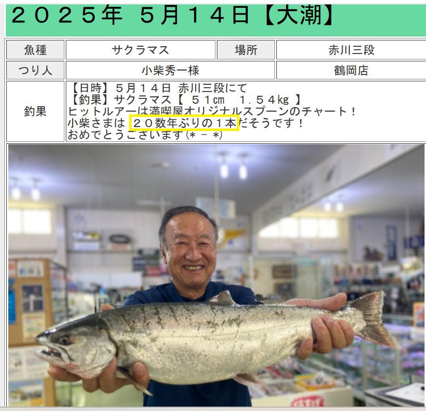 2025年には自然満喫屋(釣具屋)さんのHPで20数年ぶりでサクラマスをヒットした方が満面の笑顔写真入りで話題に成りました。