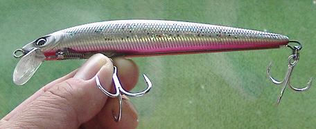 ロッドはアクション重視の為9ftのトラウトロッド(ウエダTSS92)をメインで使っていましたが、50cmを超えるとトラウトロッドでは荷が重すぎる為、ライトなシーバスロッド(ウエダSPS962Ti)を更に改良して使っています。リールはステラ4000でシマノの4000番クラスに150mが丁度巻けるラインはテトラや岩などの根ズレにも強い(株)『モーリス』VARIVAS.ソルトウォーターVEPの16ポンドでリーダー無し、クロスロックスナップ#2でルアーに取り付けます。「ルアー」 基本的には何でも良いと思いますが、私のお気に入りは ![]()
