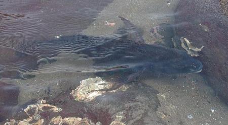 クロダイの餌釣り師には最悪の条件、シーバスにも最悪の条件なので心置き無くクロダイに専念できます。 この水深だと表層は風上から風下に流れが出来るのでダウンストリームでサクラマスを釣る私としては凪になりやすいダシ山形では東風)や強くなければ南北の風は少しあるほうが海でも逆引きのシェイキングがやり易いのです。 ベタ凪の日の50cm→ ![]() 「ポイント選定」