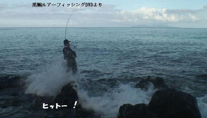 「ランディング」 ヒット後に底へ底へとグイグイ引くようなら黒鯛か真鯛なのでロッドを立ててドラグを滑らせながらでもポンピングして下さい。45cmのクロ ダイで70cmクラスのシーバスに負けないほど引きます。50cmオーバーの黒鯛や真鯛や鰤だともう止めてくれーと言うぐらい引きます、非力な人だとポンピングし きれない為、底に持っていかれてバラしてしまいます。 これが一番多いバラシで、ルアーロッドの短さゆえにキャスト距離が長いところでヒットすればするほどラインが長く出ている為、大物が手前に走って根に入るのが容易になってしまう。だからスキを与えないようにキチンと2kgぐらいにドラグ設定して置き、ドラグを滑らせながらでも強引に急いでポンピングして早く水面に浮かせなければ捕れないのです。私の妻や息子たちも大型の黒鯛や真鯛を何度か掛けてはいるのですが、皆、根に突っ込まれてバラシているし、私も大型に何度か根に入られてバラシていますのでご注意あれ!高速ポンピングあるのみです(^_-)-☆ ![]() 黒鯛は砂浜では白っぽく、茶色の岩場では茶色に、黒い岩場では真っ黒に瞬時で体色を変えます、ですからルアーをチェイスして来ているのに気が付かない人が多いです、注意してみると結構追ってきてます!そこでUターンするようならロッドアクションが足りないのです。 私のオリジナル『シェイキング&ジャーク』はサクラマスのみならずブラックバスやスズキや黒鯛・真鯛・ブリまで幅広く効果があることが実釣で証明されています。 その後、休日しか釣りに行く事が出来ない私は悪天候の日ばかり休日に重なる年の時もあり、やむを得ずシーバス狙いに切り替えるとシーバスは追い切れずにスレヒットが多く、段々シーバス向けにリトリーブスピードを落としてシーバスが良くバイトできるようにしていたら黒鯛がチェイスしてもUターンして釣れなくなりまして(笑)