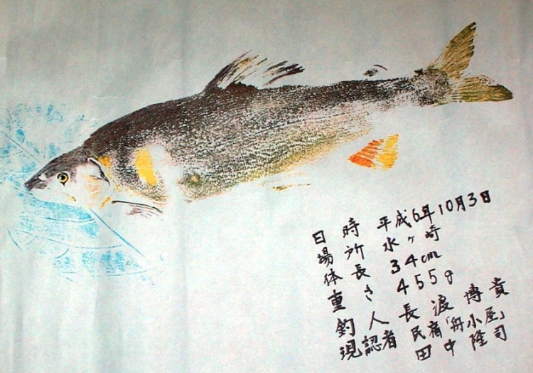 長渡氏の五ヶ瀬川34cm455g魚拓