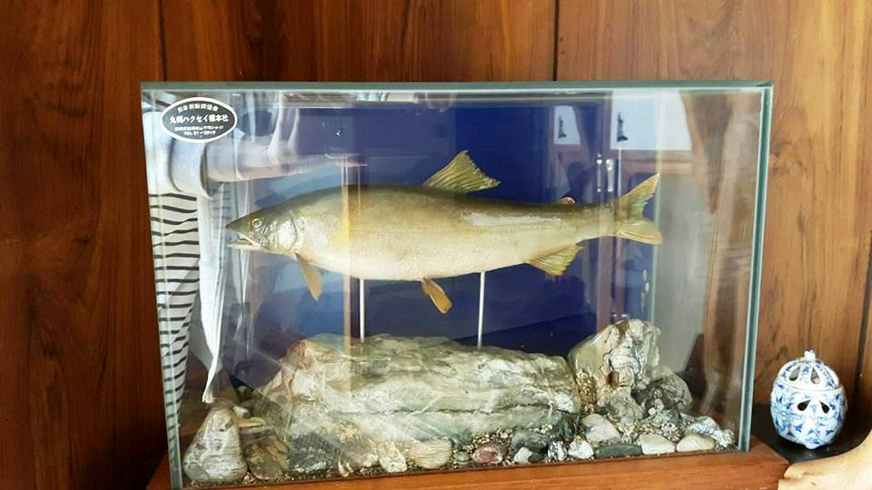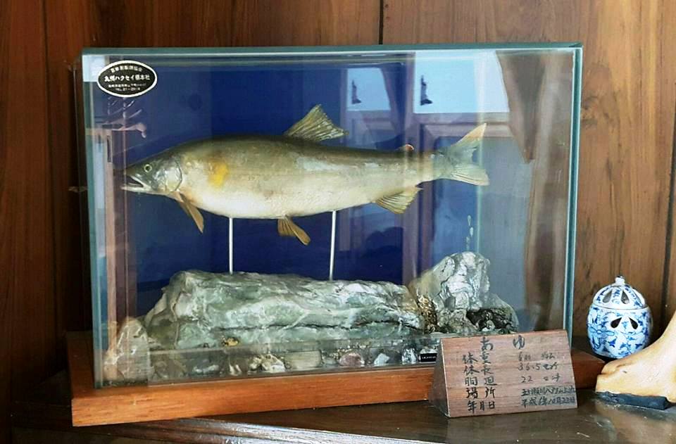数々仕留め、ついに日本記録の巨鮎を釣り上げ剥製に残したそうです。