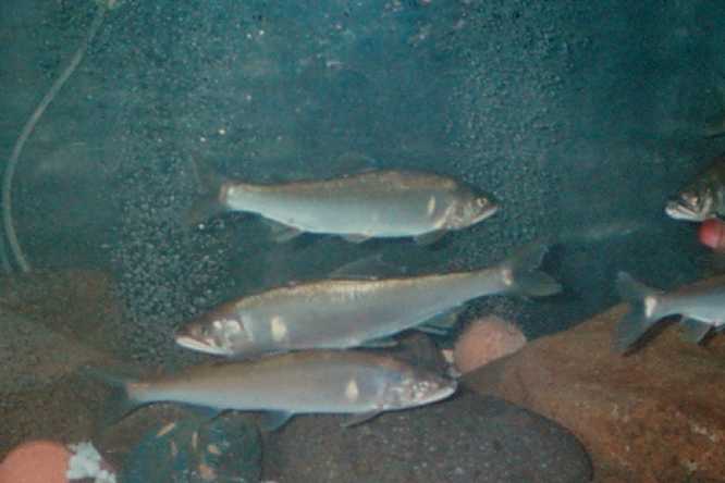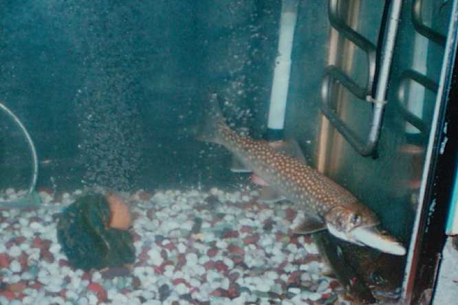 私は中学時代からイワナやヤマメやアユを現在でも飼っています、と言うより釣ろうと思った魚に付いては徹底的に研究してきたつもりです。おかげで見えない水中世界が人よりは見えます。アユは水を替えると垢など無くても縄張り意識が強くなるし、サケ科のフィッシュイーターは小魚が普通に泳いでいるとゆっくり追って行きながら良く観察してから食べます。しかし、逃げる時にヒラを打つと急いで食いつきます。更に小魚がパニックに陥り魚の目線より上の水面近くに逃げてギラギラと水面から飛び出し兼ねないほどナブラ状態になると狂ったように追い食いするんです。上に逃げると食われ易く、下に逃げるものは見失い易いようです、巻き終わりに水面近くでヒットし易いのはそのためです。だから、タダ引きに付いてきたらトゥイッチングで食わせる、それで駄目ならシェイキングで連続的にヒラを打たせて狂わせて、一瞬サスペンドさせて食う間を与えるんです。アップやクロスにキャストした時はもちろん、ダウンにキャストした時でさえ、シェイキングすると糸ふけが出ますがその分だけジャークで移動させるんです。その後ロッドを戻しながらリーリングする時にプラグがサスペンドするのでその間が食いつくタイミングとなる訳です。