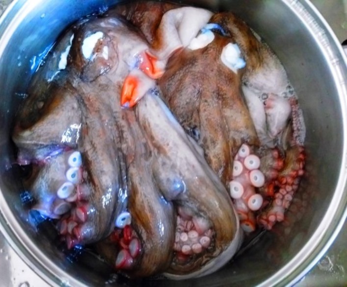旨みが出ますから茹でると柔らかくて美味しいタコになるらしい。