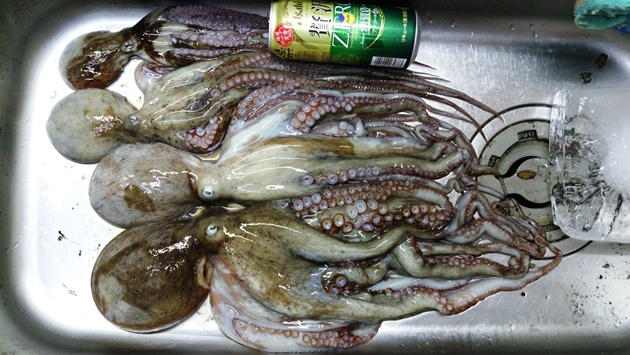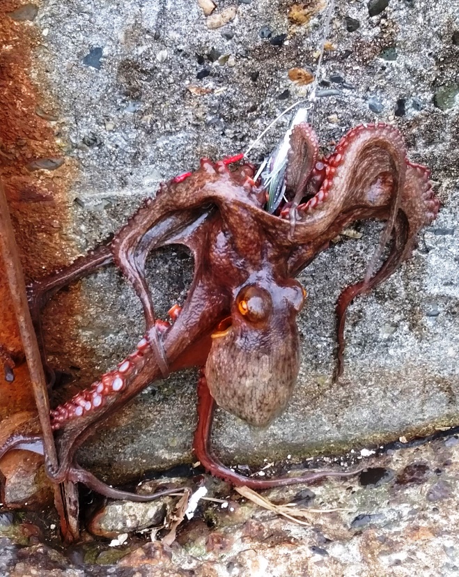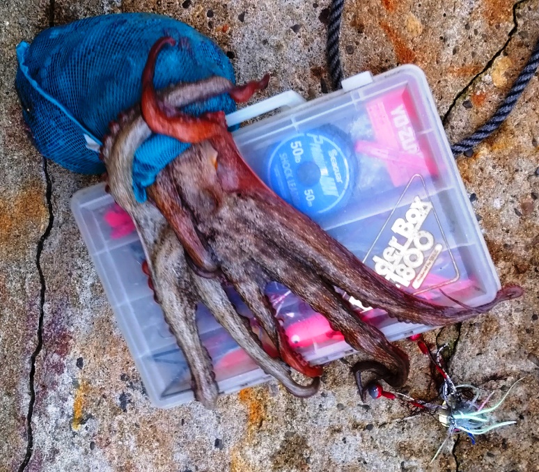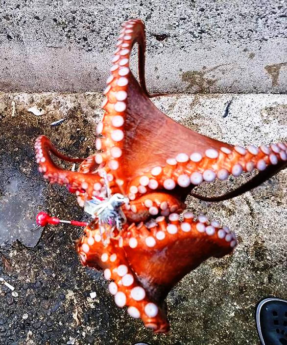 黒鯛・シーバスなど大物狙いの合間、真昼間でもこのタコ釣果