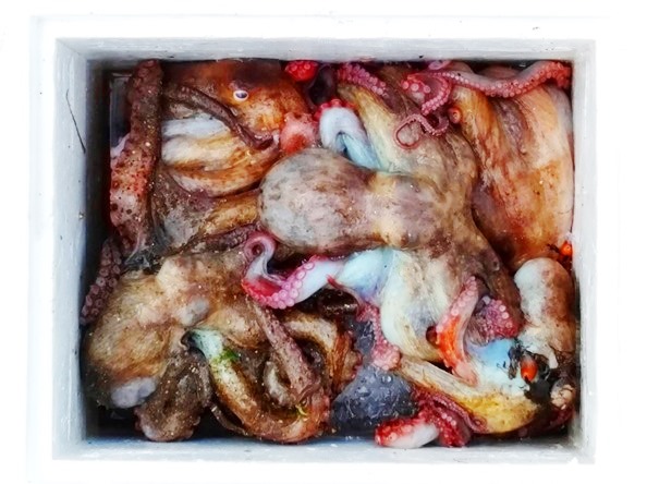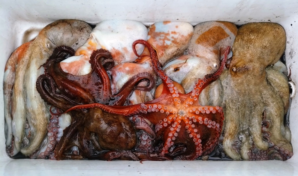 いつの間にかこんなに大ダコが60cmの大型クーラーに並ぶ。
