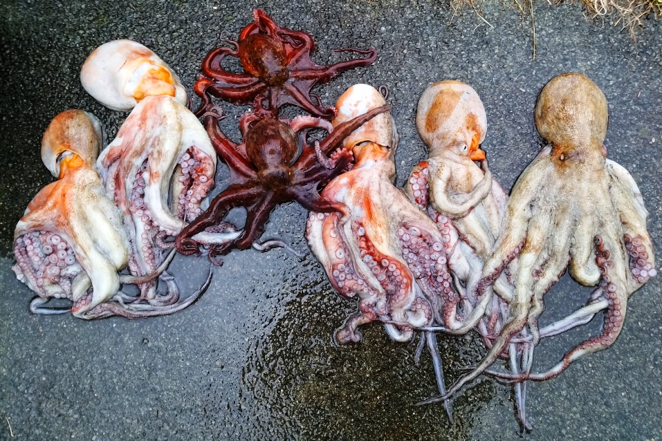 いつもの5匹入るタコネットにも入りきれない大物ばかり。