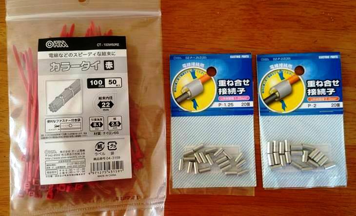 総材料とペンチ・鋏・ニッパー・ボビンホルダー・スレッド・接着剤等の道具