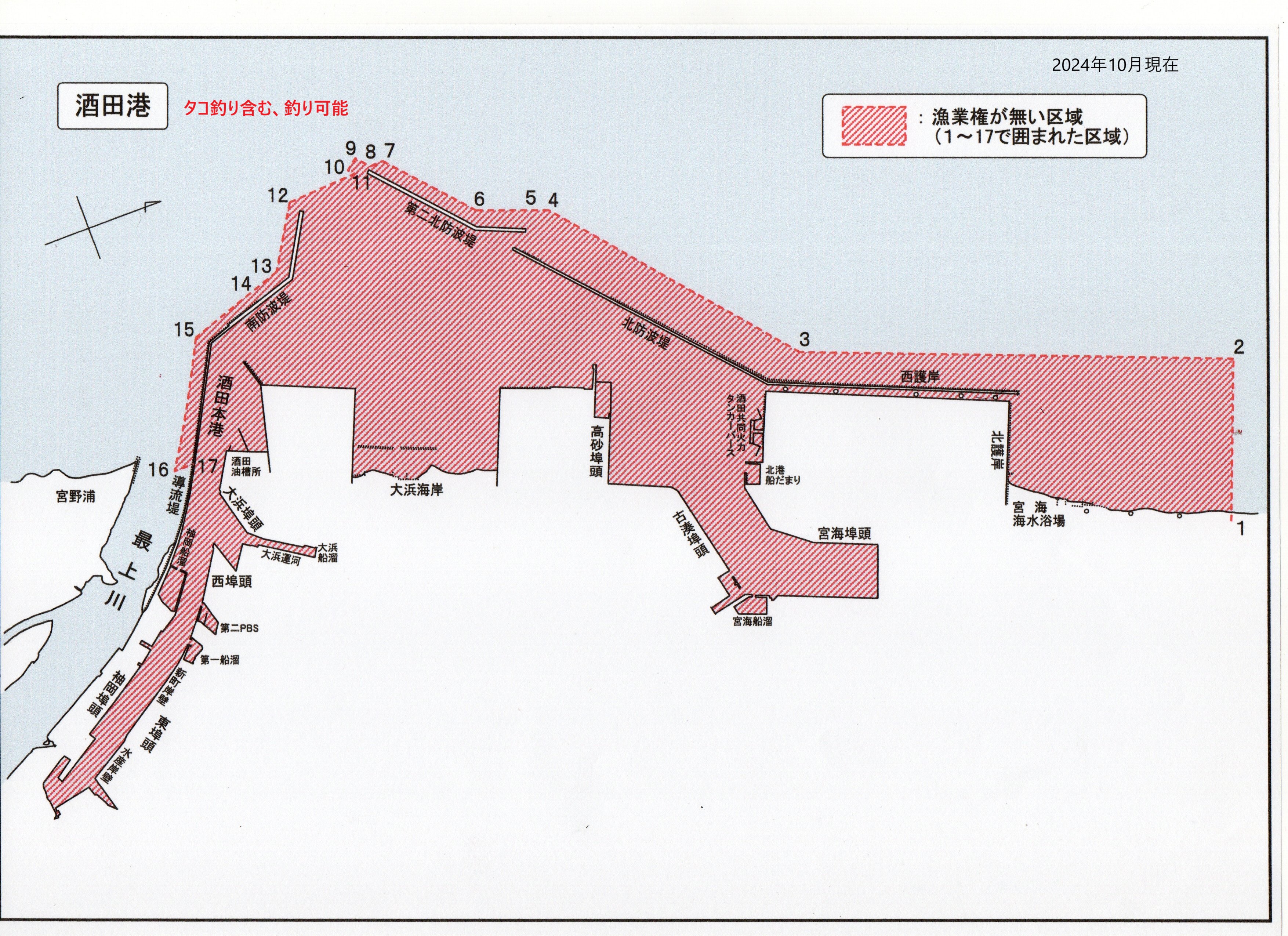 山形県内は漁業権が消滅している酒田港全域と宮海海水浴場一帯、