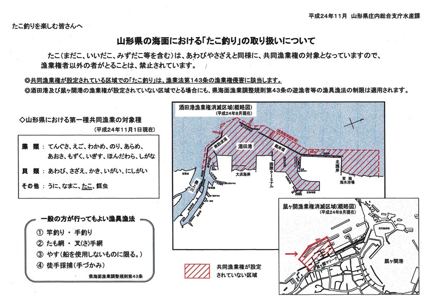 ↓(※山形県でタコ釣りを楽しむ皆さんへ参照)