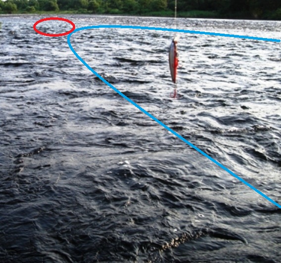 だからはじめに各々が使用するロッドを使って、水中のルアーの動きを全て把握してからで無いと適するアクションは出来ません。使用するルアーがバランスを崩すスピード、流速を考え、それ以下の速度でロッドを操作しないと水中で回転したり撚れたりフックにラインが絡んだりします。意図的に時々ヒラを打たせて誘うのは良いのですが、安定していなければならない逆引きでのスイミング時に勝手に撚れるのは水面から飛び出したり、回転したりして不必要な水中音を発したり悪い面で目立ち過ぎポイントが荒れてしまいます。サクラマス用に作られている9cm前後のミノープラグや各種のスプーンはあまり大きなストロークで動かすと簡単にバランスを崩す物が多いものです。
