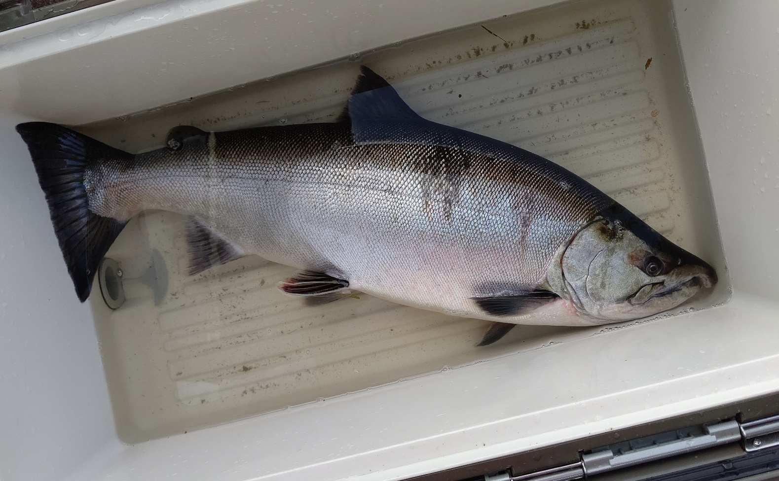 50年以上様々な釣りをしている私個人的にはサクラマスと呼ぶに相応しい風格の魚は海に行ってきた最低50cm以上の魚、欲を言えば60cm以上であって欲しいのですが、30cmでもサクラマスという人は居るし、大きな川やダム湖や湖沼で育った陸封型サクラマスも存在するし、ヤマメとの中間とも言えるパーマークが消えかかったシュードスモルトと呼ばれる擬似銀毛やグリルスと呼んでいるどっちつかずの30〜40cmの魚、更に40〜50cmの中型サクラマス、全てサクラマスと言って間違いではありませんが・・・。