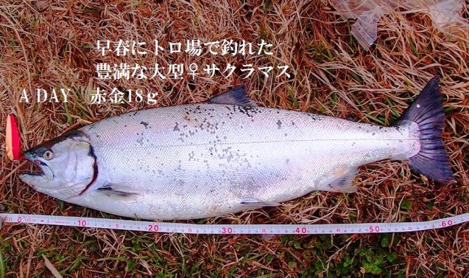 3投目で62cm2.7キロ♀サクラマスが出ました。